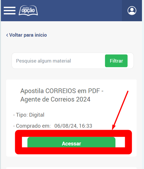 Para acessar seu curso (bonus) que ganha ao adquirir a apostila basta seguir o passo a passo: